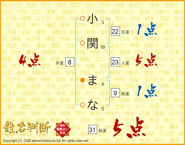 小関まなさんの総運は31画の5点!