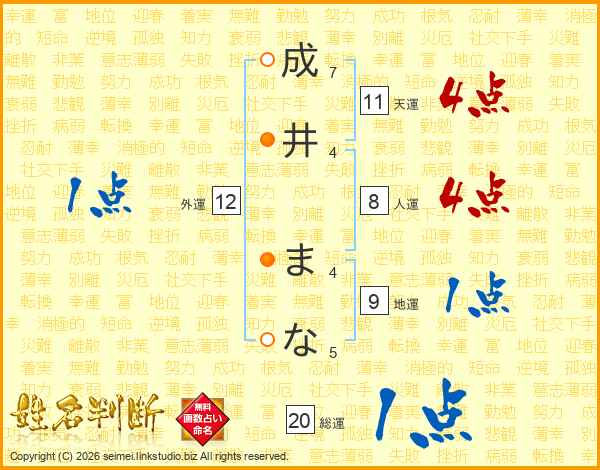成井まなさんの天運は11画の4点!