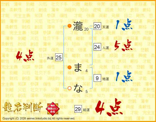 瀧まなさんの総運は29画の4点!