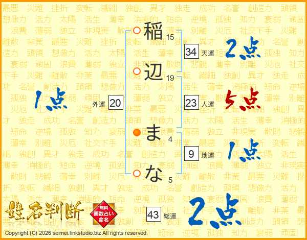 稲辺まなさんの総運は43画の2点!