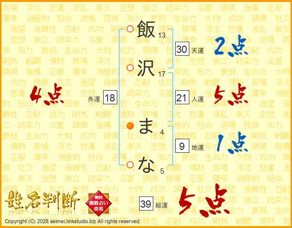 飯沢まなさんの総運は39画の5点!