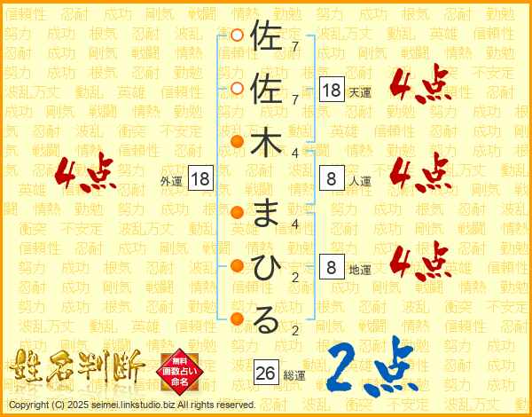 佐佐木まひるさんの総運は26画の2点!