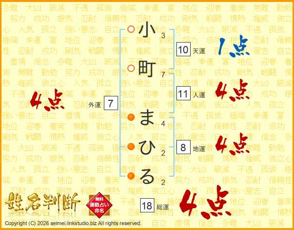小(3画)町(7画) ま(4画)ひ(2画)る(2画)