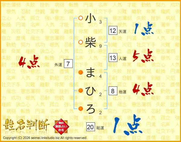 小(3画)柴(9画) ま(4画)ひ(2画)ろ(2画)