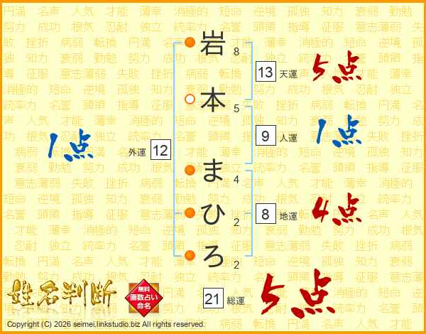 岩本まひろさんの天運は13画の5点!
