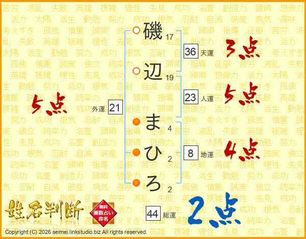 磯辺まひろさんの外運は21画の5点!