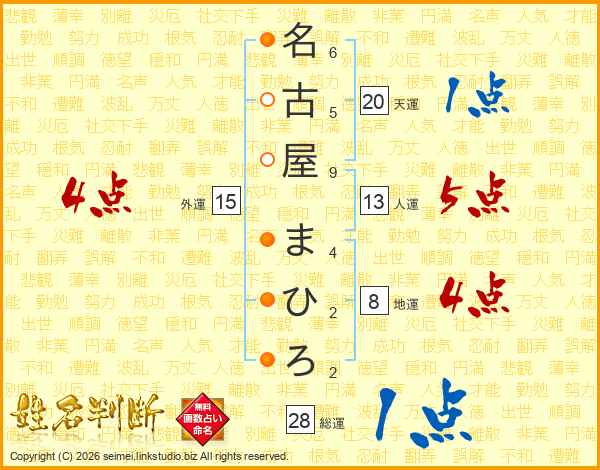 名(6画)古(5画)屋(9画) ま(4画)ひ(2画)ろ(2画)