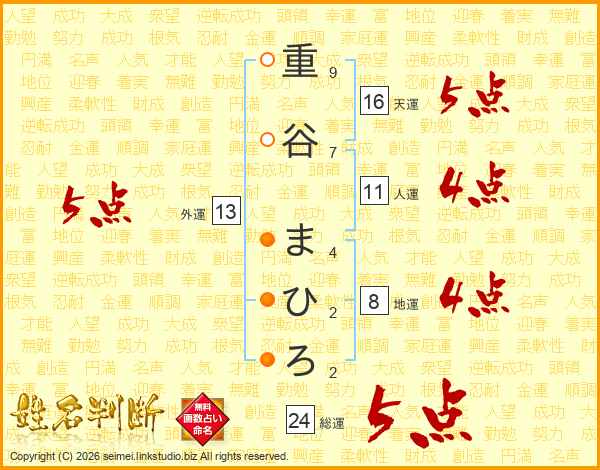 重谷まひろさんの天運は16画の5点!