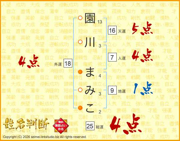 園川まみこさんの総運は25画の4点!
