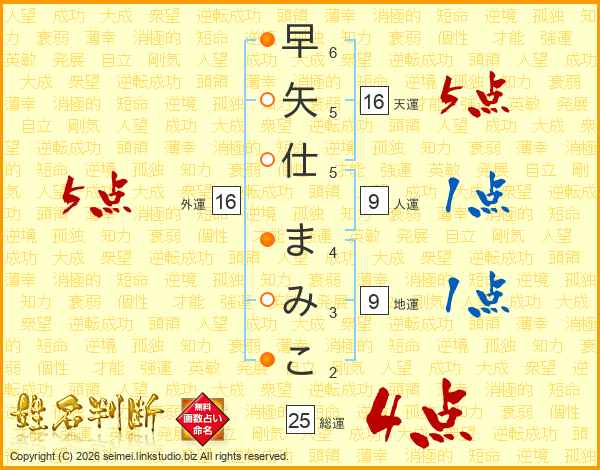 早矢仕まみこさんの総運は25画の4点!