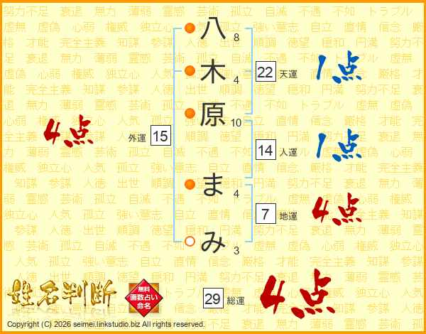 八木原まみさんの総運は29画の4点!