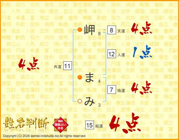 岬まみさんの総運は15画の4点!