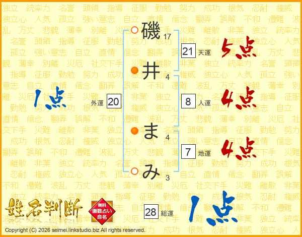 磯井まみさんの総運は28画の1点!