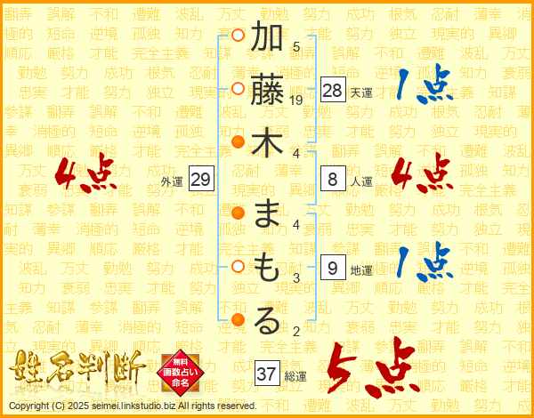 加(5画)藤(19画)木(4画) ま(4画)も(3画)る(2画)
