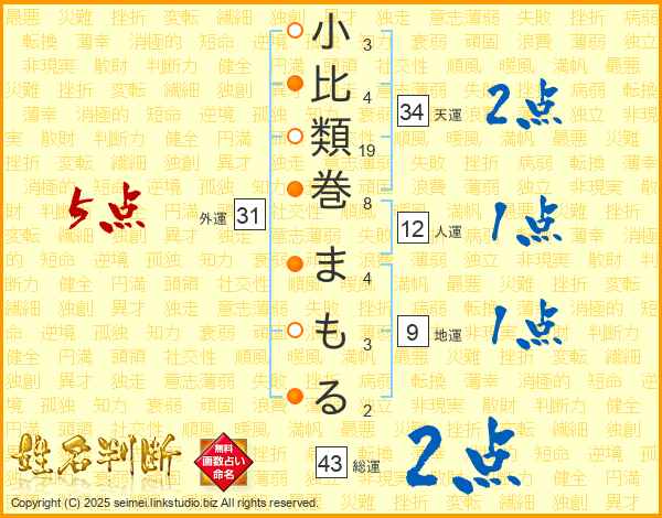 小(3画)比(4画)類(19画)巻(8画) ま(4画)も(3画)る(2画)