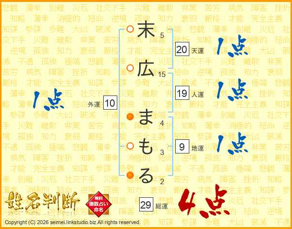末広まもるさんの総運は29画の4点!