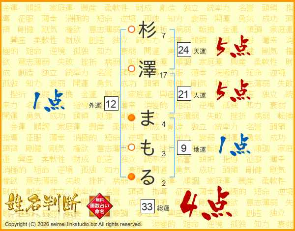 杉澤まもるさんの総運は33画の4点!