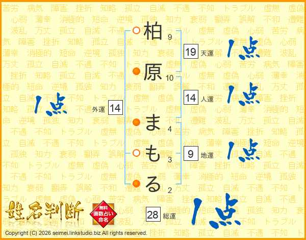 柏原まもるさんの人運は14画の1点!