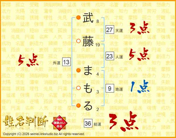 武藤まもるさんの外運は13画の5点!