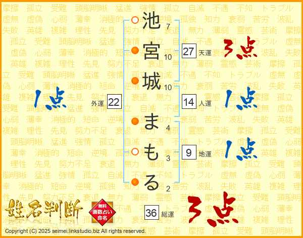 池(7画)宮(10画)城(10画) ま(4画)も(3画)る(2画)