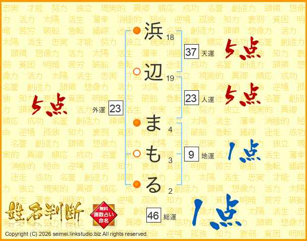 浜(18画)辺(19画) ま(4画)も(3画)る(2画)