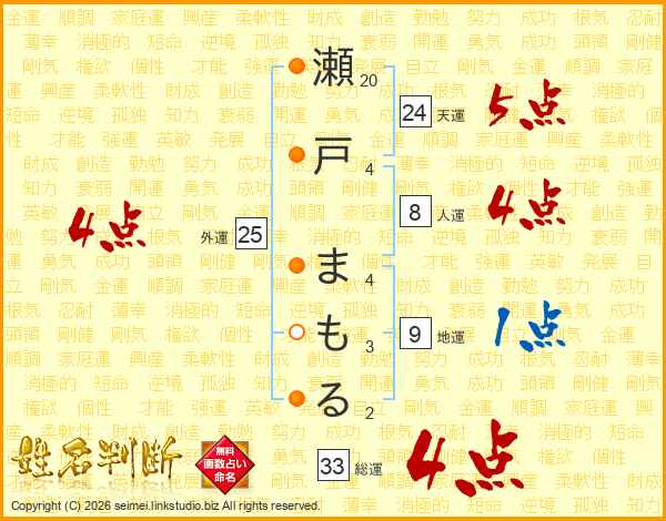 瀬(20画)戸(4画) ま(4画)も(3画)る(2画)