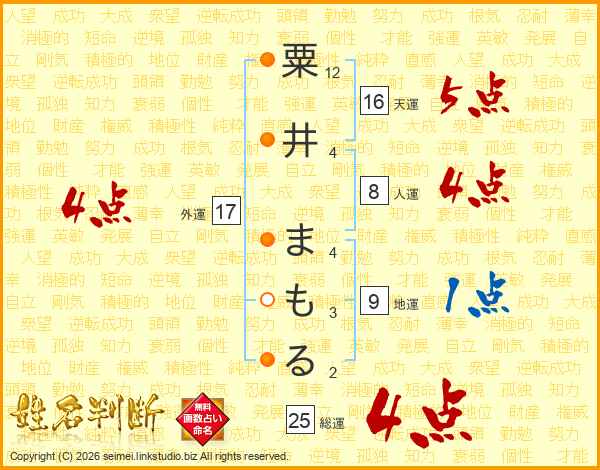 粟井まもるさんの総運は25画の4点!