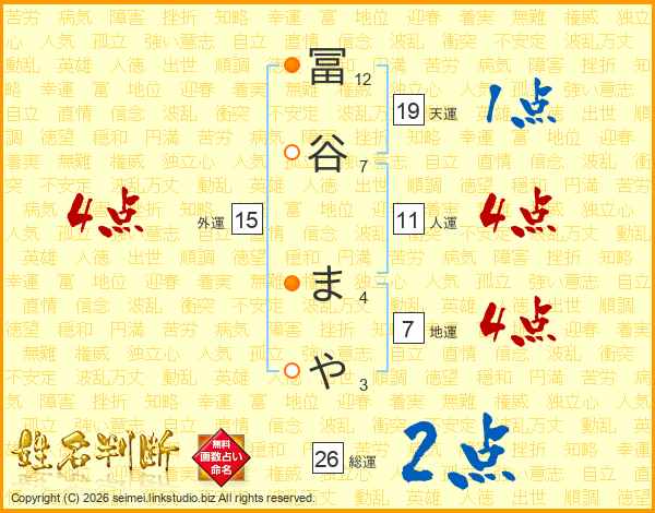 冨谷まやさんの人運は11画の4点!