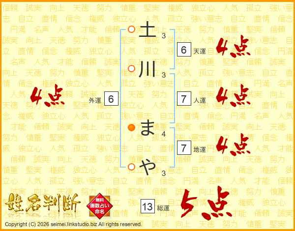 土川まやさんの総運は13画の5点!