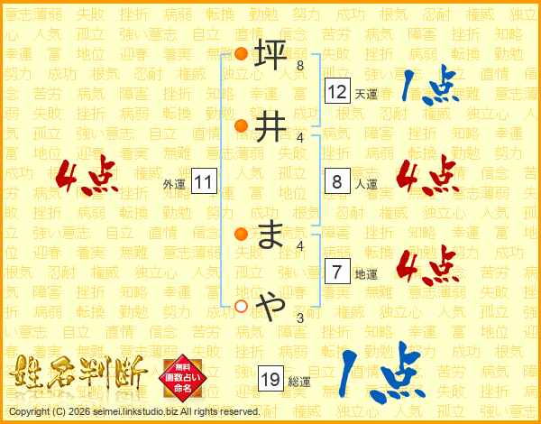 坪井まやさんの天運は12画の1点!