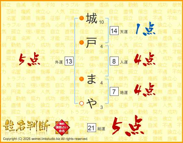 城戸まやさんの総運は21画の5点!