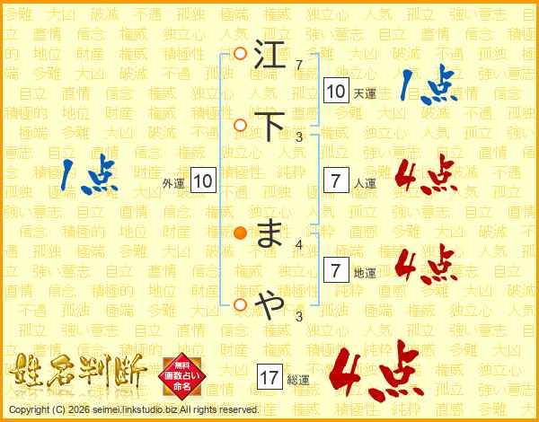 江下まやさんの総運は17画の4点!