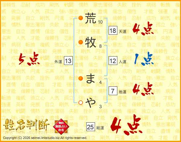 荒牧まやさんの天運は18画の4点!