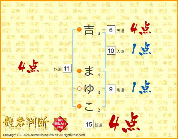 吉まゆこさんの総運は15画の4点!