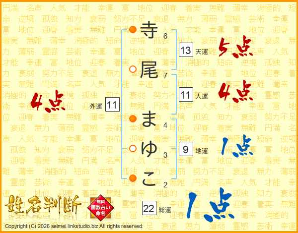 寺尾まゆこさんの総運は22画の1点!
