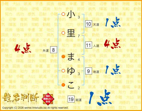 小里まゆこさんの人運は11画の4点!