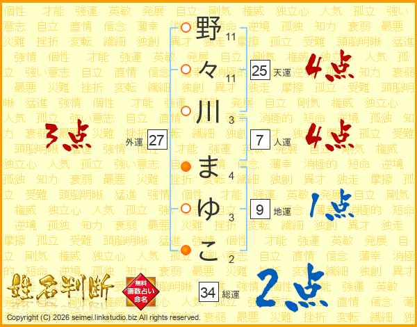 野々川まゆこさんの総運は34画の2点!