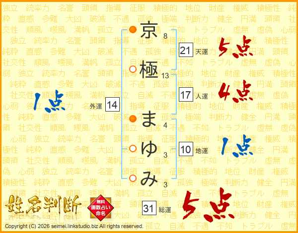 京極まゆみさんの総運は31画の5点!