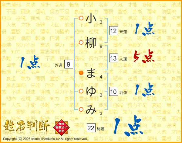 小柳まゆみさんの総運は22画の1点!