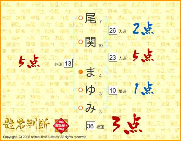 尾関まゆみさんの天運は26画の2点!