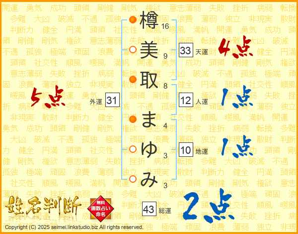 樽美取まゆみさんの天運は33画の4点!