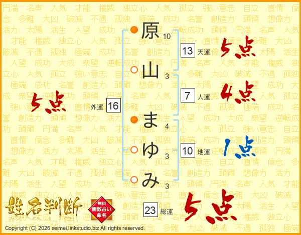 原(10画)山(3画) ま(4画)ゆ(3画)み(3画)