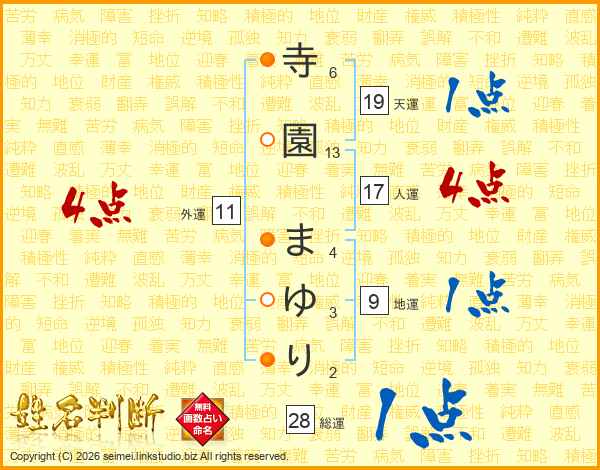 寺園まゆりさんの天運は19画の1点!