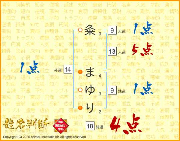 粂まゆりさんの総運は18画の4点!