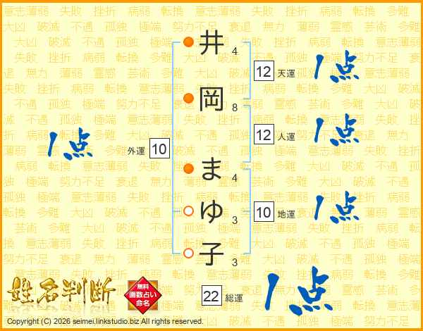 井岡まゆ子さんの総運は22画の1点!