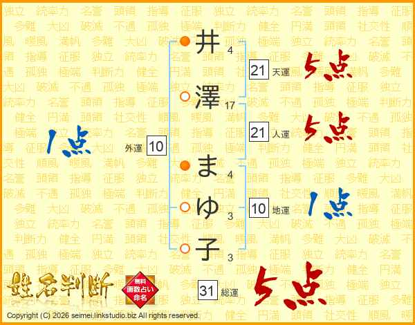 井(4画)澤(17画) ま(4画)ゆ(3画)子(3画)