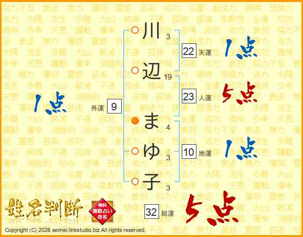 川辺まゆ子さんの総運は32画の5点!