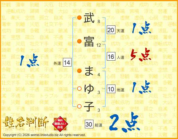 武(8画)富(12画) ま(4画)ゆ(3画)子(3画)