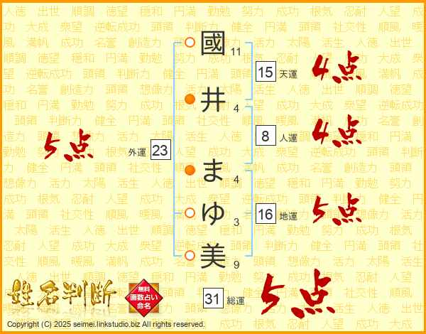 國(11画)井(4画) ま(4画)ゆ(3画)美(9画)