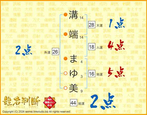 溝端まゆ美さんの外運は26画の2点!